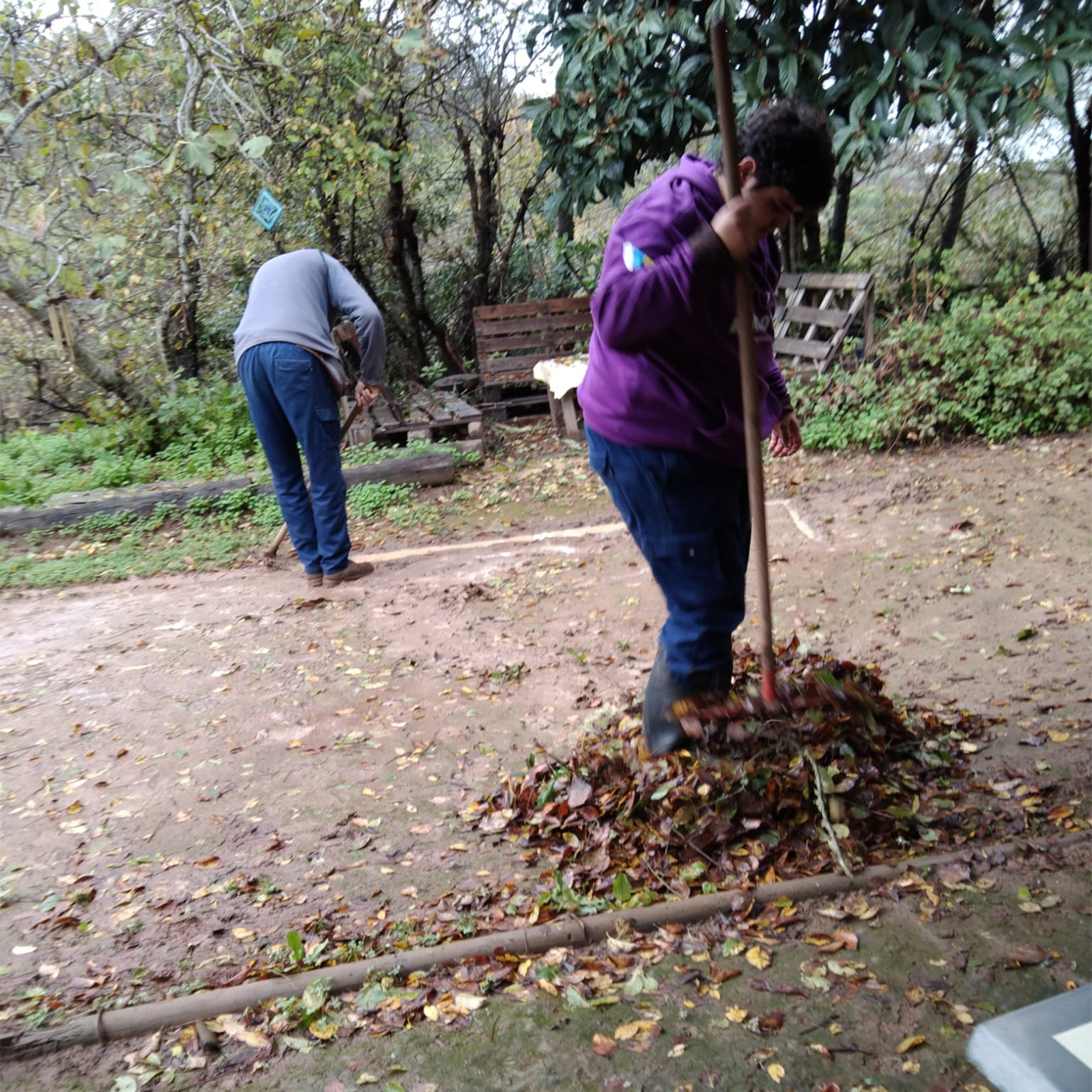 El 14/12/2025 en el encuentro mensual y llovía varios días ya, desconvoque el encuentro pero así y todo vinieron 4 personas que ayudaron a hacer canalillos para que el agua encharcada corriera y a quitar hojarascas 🥰 como no estar sumamente agradecida con este grupo que no me deja de sorprender. Entre chaparrón y chaparrón tocábamos las chácaras y el tambor.